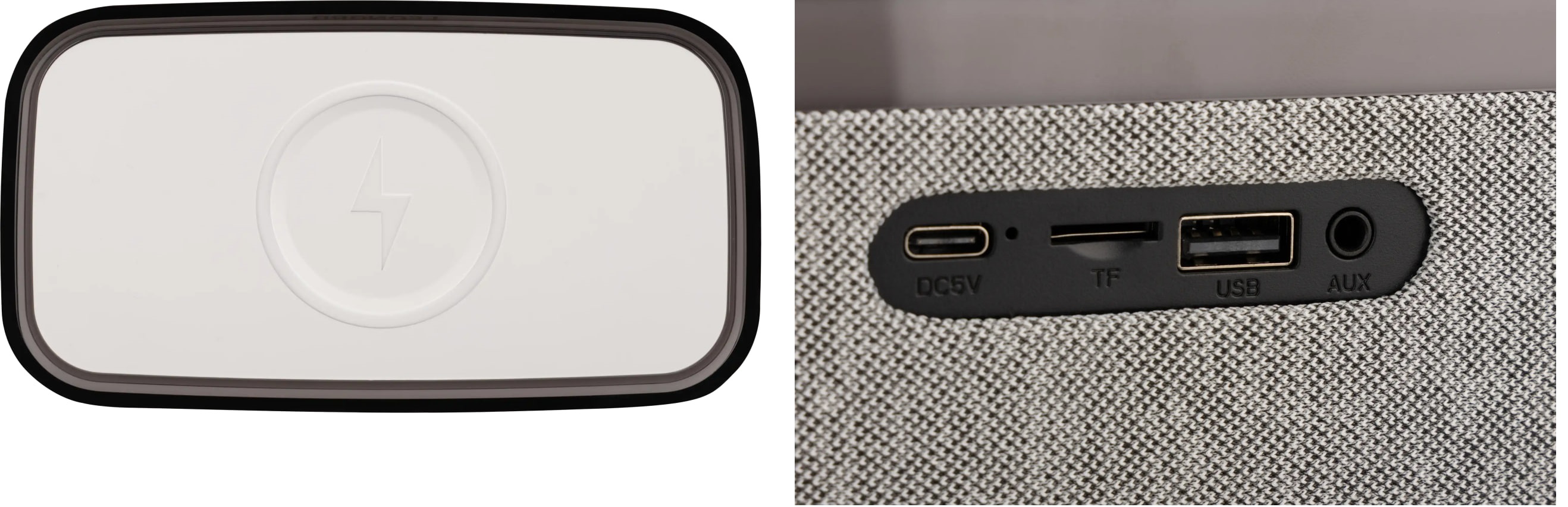 Беспроводная зарядка мощностью 15 Вт — быстро заряжайте совместимые устройства просто положив их на колонку.