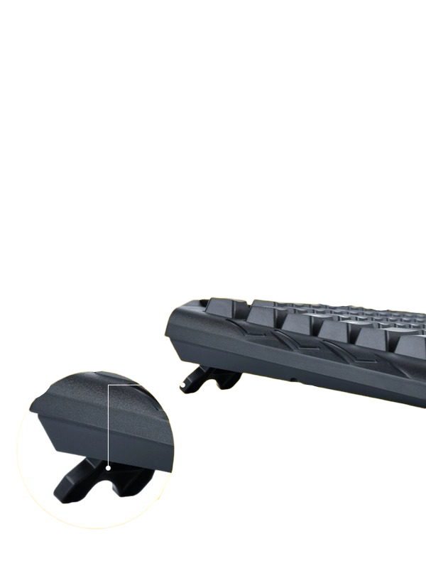 На нижней части устройства расположены ножки, которые позволяют регулировать угол наклона клавиатуры, что удобно для работы и уменьшает блики от света. Гладкий ход клавиш делает работу с клавиатурой почти бесшумной, что особенно полезно в ночное время, когда игры становятся особенно интенсивными. Клавиатура рассчитана на 10 миллионов нажатий благодаря качественным мембранам.