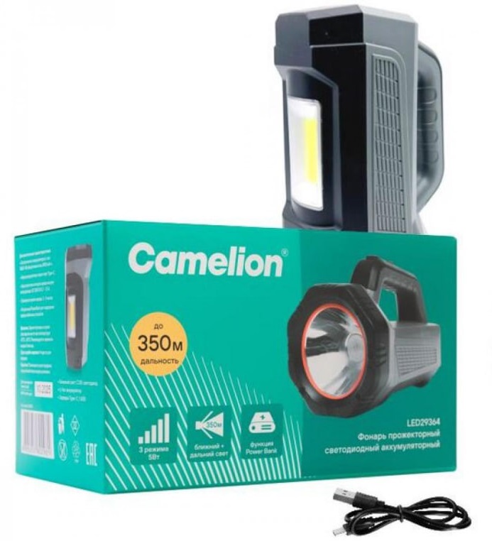 Фонарь прожекторный Camelion LED29364 способен освещать объекты на расстоянии свыше 350 метров. Помимо мощного освещения, прибор оснащен кемпинговым плафоном и встроенным PowerBank, что обеспечивает дополнительную функциональность..