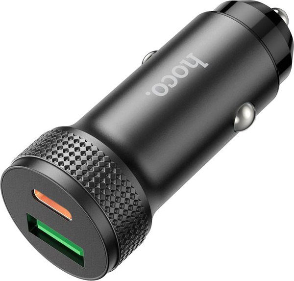 Автомобильное зарядное устройство с одним Type-C 20W и одним USB-A 18W портами.