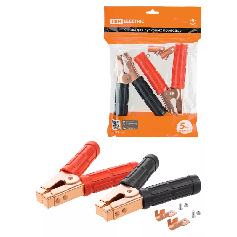 Зажим "крокодил" для пусковых проводов 700 А (1 красный + 1 черный) TDM