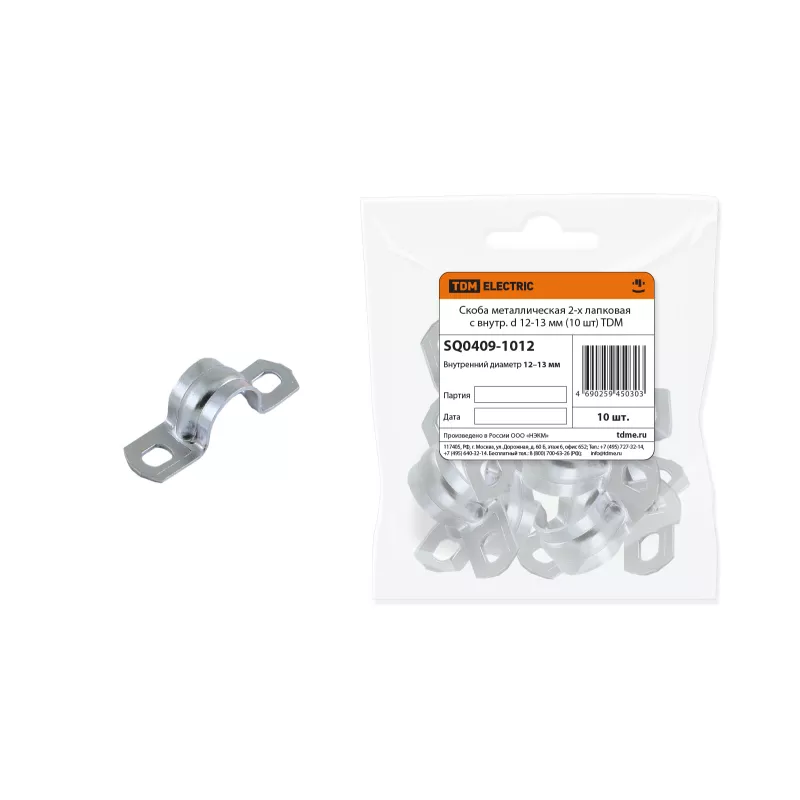 Скоба металлическая 2-х лапковая с внутр. d 12-13 мм (10 шт) TDM /мин.пар.10шт