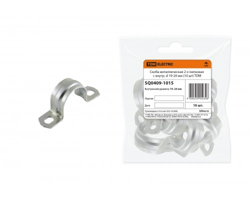 Скоба металлическая 2-х лапковая с внутр. d 19-20 мм (10 шт) TDM /мин.пар.10шт