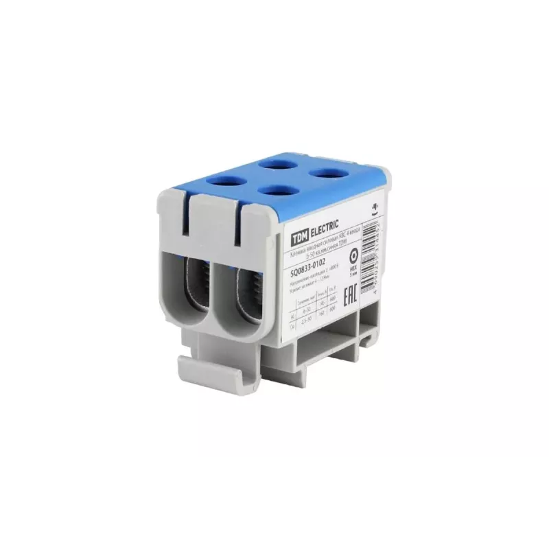 Клемма вводная силовая КВС 4 ввода 6-50 кв.мм. синяя TDM 1/160 ЦЕНА▼