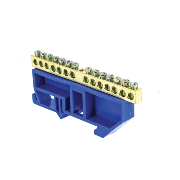Шина "0" N (6х9мм) 14 отверстий латунь синий изолятор на DIN-рейку EKF PROxima /мин.пар.2шт
