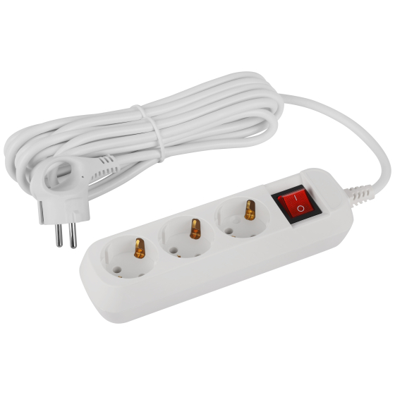 Удлинитель электрический Эра GREENLINE UDL-16-350-ES с заземлением, с выключателем, на 3 розетки, провод 5м ПВС 3x1мм2. Рассчитан на максимальную мощность 16А/3500 Вт. Удлинитель станет Вашим надежным помощником, если любимые электроприборы находятся далеко от розеток. Корпус выполнен из ударопрочного и негорючего пластика (полипропилен). Вилка обеспечена кольцом для удобного извлечения ее из розетки. Модель удлинителя на 16А позволяет подключить бытовые приборы общей нагрузкой до 3500Вт.