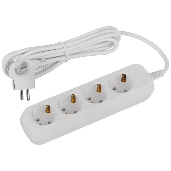 Удлинитель электрический Эра GREENLINE UDL-16-430-E с заземлением, на 4 розетки, провод 3м ПВС 3x1мм2. Рассчитан на максимальную мощность 16А/3500 Вт. Удлинитель станет Вашим надежным помощником, если любимые электроприборы находятся далеко от розеток. Корпус выполнен из ударопрочного и негорючего пластика (полипропилен). Вилка обеспечена кольцом для удобного извлечения ее из розетки. Модель удлинителя на 16А позволяет подключить бытовые приборы общей нагрузкой до 3500Вт.