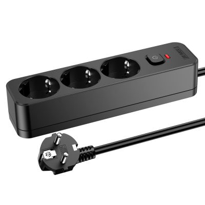 Cетевой фильтр Perfeo "REAL HOME" 3,0м, 3 розетки, 16А, 3500 Вт, тройная защита, черный /30