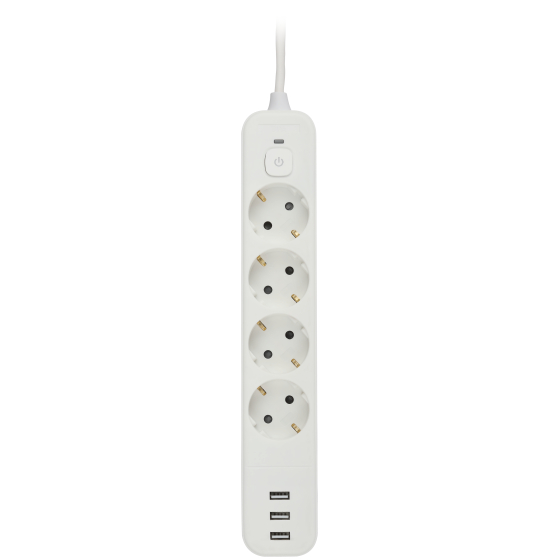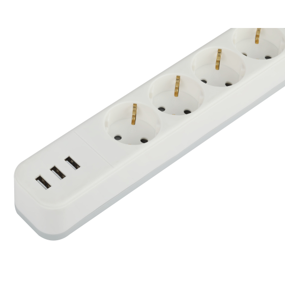 Сетевой фильтр ЭРА USF-4es-3m-3xUSBA-W с ЗК с выключателем 4 розетки+3xUSBA 3,1A 3м 10А белый