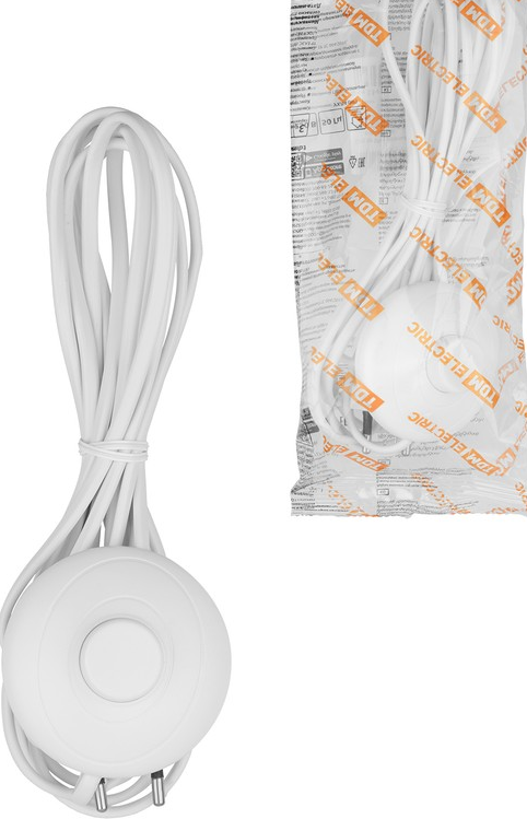 Шнур для БРА с ножным выключателем ШВВП-ВП 2х0,5 мм2 3,5 м 600 Вт белый TDM
