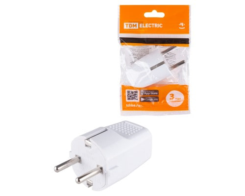Вилка прямая с/з белая c перфорацией 10А 250В TDM/30