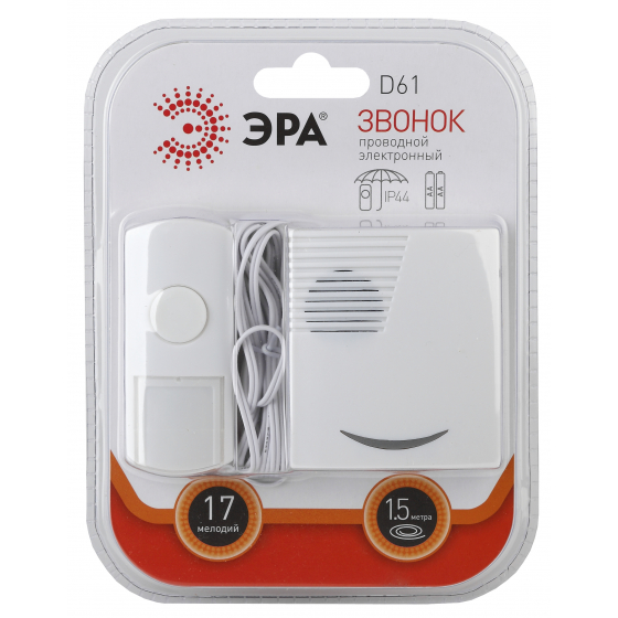 Проводной звонок ЭРА D61 (нов.упак) (10/60/480)