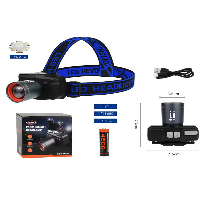Фонарь налобный, налобный аккумуляторный фонарь, 3 режима, зарядка type-c, 1 аккумулятор *18650