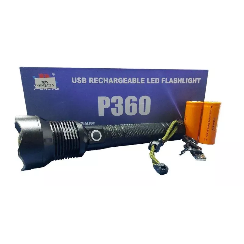 Фонарь ручной, 3 режима свечения, Zoom, с индикатором зарядки, аккумулятор 2*26650, заряд