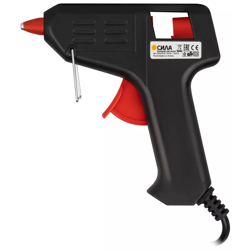 Клеевой пистолет СИЛА SGG20-01 20Вт под стержень 7 мм в комплекте 7мм х 10cм 2 шт /24/48