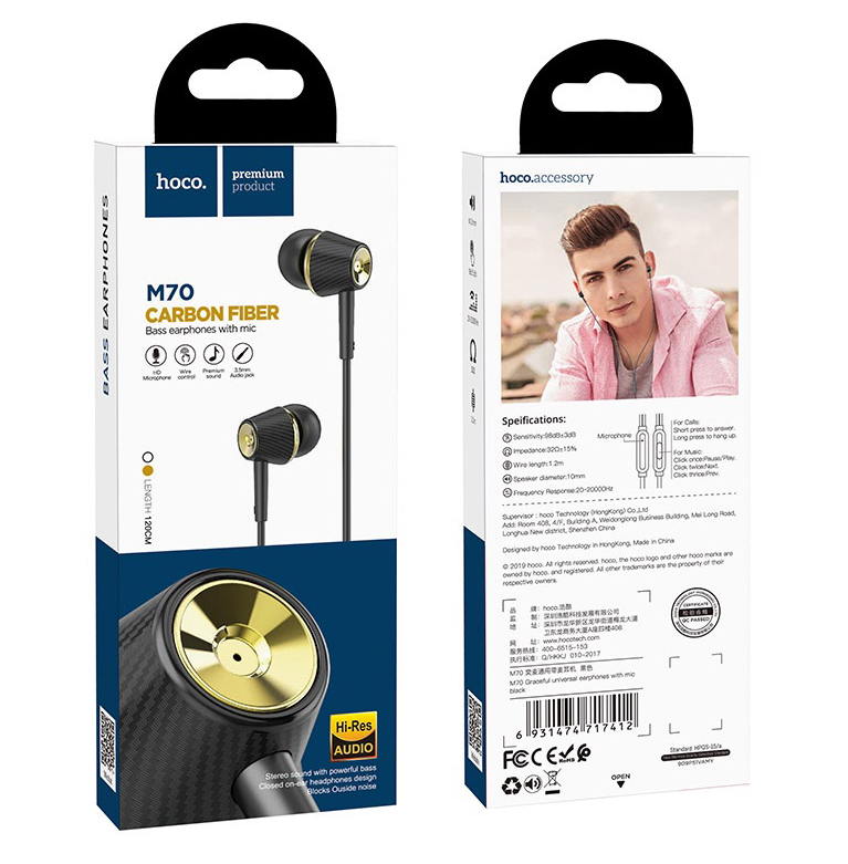 hoco наушники внутриканальные с микрофоном M70 черный 1/21/210