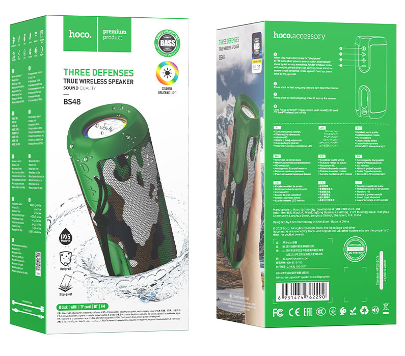 hoco Bluetooth-колонка BS48, MP3, microSD, мощность 5 Вт*2, 1200 mAh, хаки 1/40