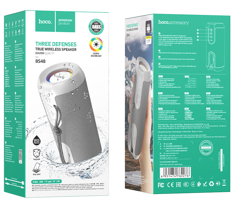 hoco Bluetooth-колонка BS48, MP3, microSD, мощность 5 Вт*2, 1200 mAh, серая 1/40