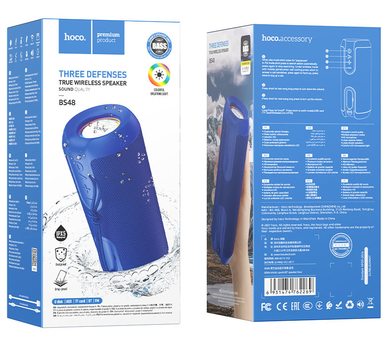 hoco Bluetooth-колонка BS48, MP3, microSD, мощность 5 Вт*2, 1200 mAh, синяя 1/40
