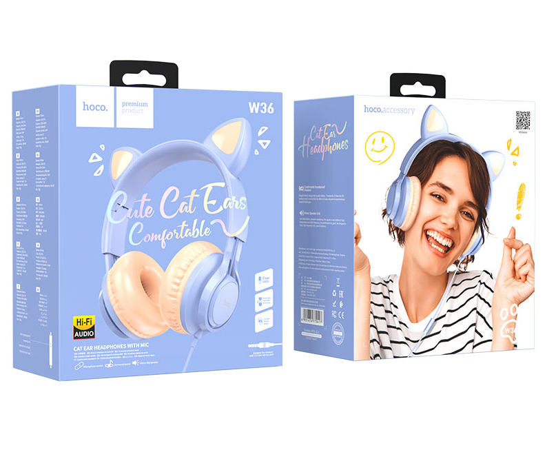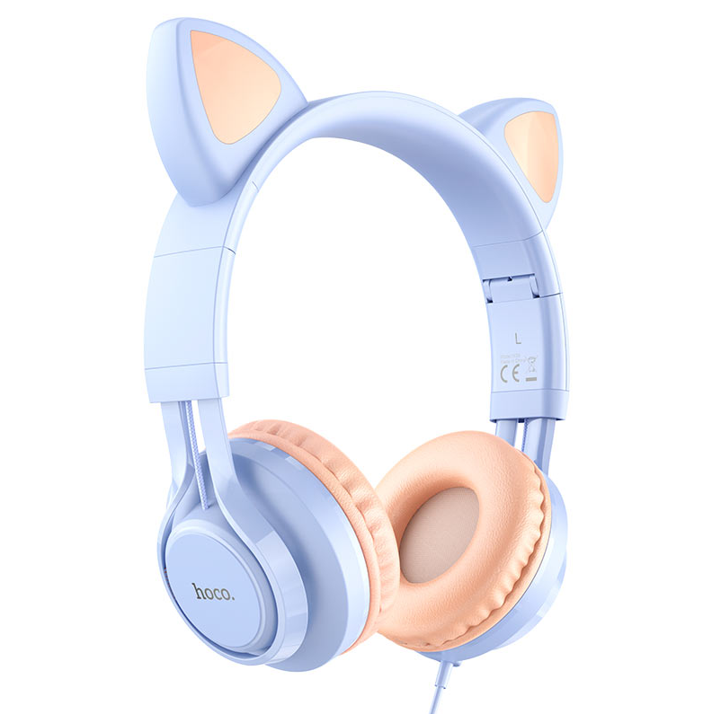 hoco наушники полноразмерные с микрофоном W36 CAT, светло-голубой, 3,5 мм, 1,2 метр 1/30