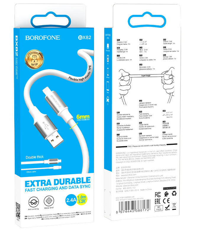 Кабель BX82 - это надежный и удобный в использовании кабель, который обеспечивает быструю зарядку и передачу данных, идеально подходящий для устройств Apple с разъемом Lightning.
