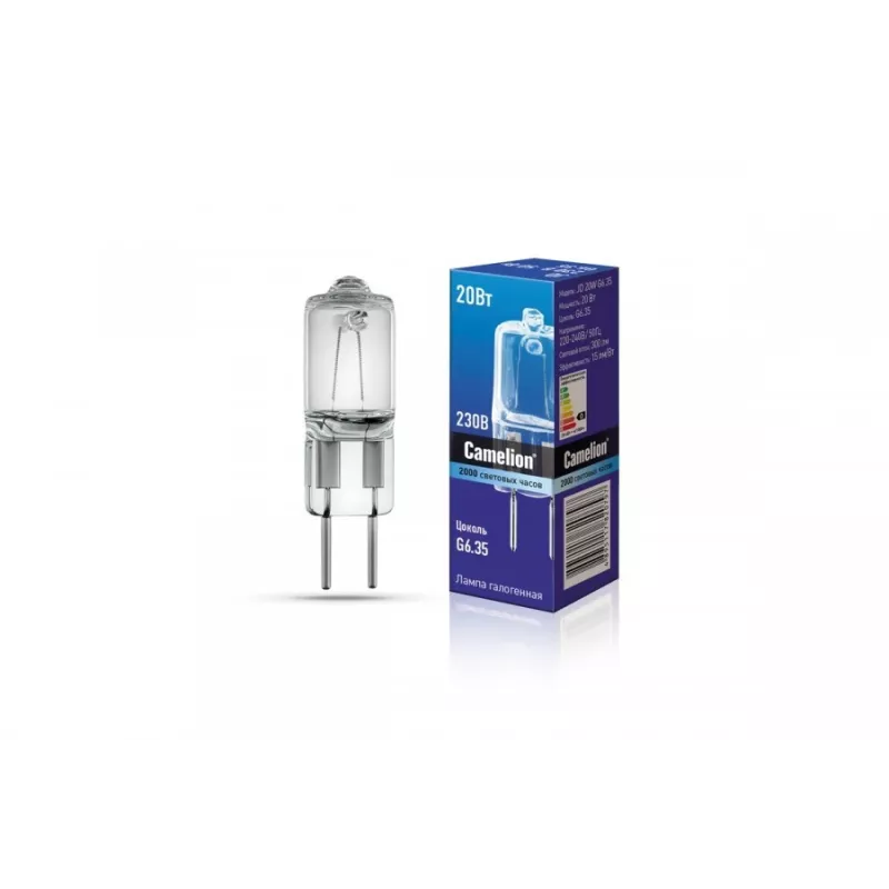 Camelion Лампа галогенная JD 20W G6.35 220V (без рефлектора, 2000 часов) 5/100/1000