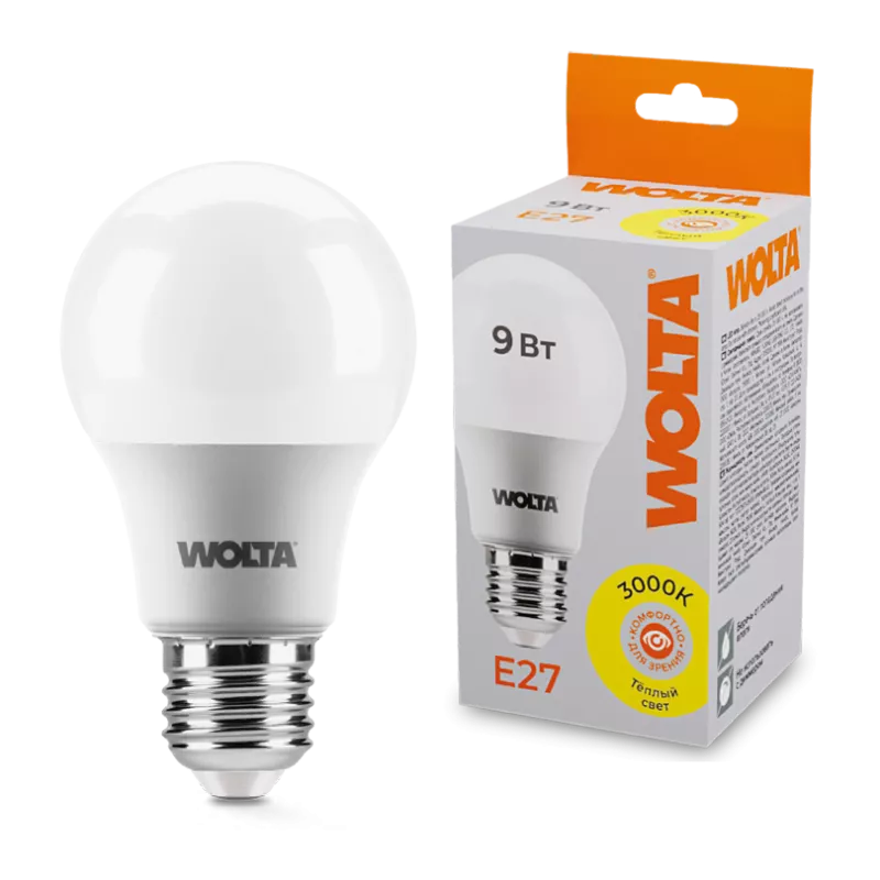 WOLTA Лампа светодиодная A60 9Вт 800лм Е27 3000К 3/50