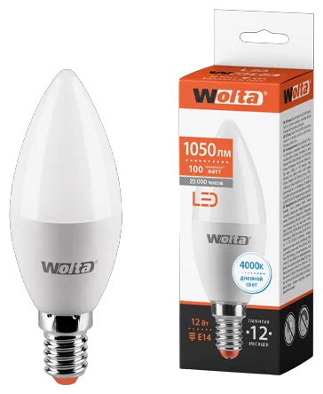 WOLTA Лампа светодиодная C37 12Вт 1050лм 4000К Е14 2/50
