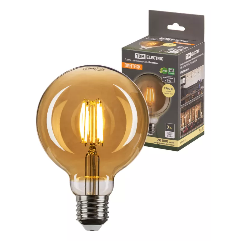 Лампа светодиодная «Винтаж» золотистая G95, 7 Вт, 230 В, 2700 К, E27 (шар) TDM