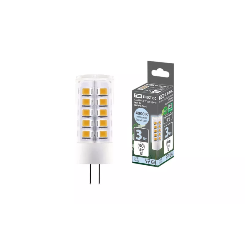 Лампа светодиодная G4-3 Вт-AC/DC 12 В-4000 К, SMD, 16x43 мм TDM