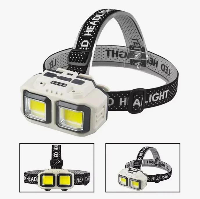 Фонарь налобный 2 COB (Белый+красный) 1*18650, кабель USB-Type-C, влагозащита, датчик движ.