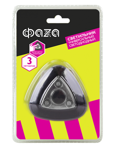 Универсальный компактный светодиодный светильник с 3 светодиодами, легко устанавливается на ровную поверхность (двусторонний скотч входит в комплект поставки). Не требует прокладки проводов. Не нагревается. Применяются элементы питания типа: 3хААА (в комплект не входят).