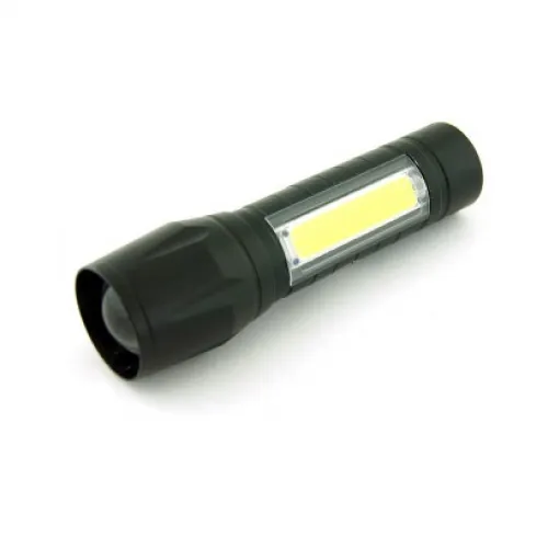 КОМПАКТНЫЙ РУЧНОЙ ФОНАРЬ СО ВСТРОЕННЫМ АККУМУЛЯТОРОМ. МАЛОГАБАРИТНЫЙ МЕТАЛЛИЧЕСКИЙ ФОНАРЬ С ОДНИМ ГОЛОВНЫМ МОЩНЫМ СВЕТОДИОДОМ И ОДНИМ БОКОВЫМ COB СВЕТОДИОДОМ.