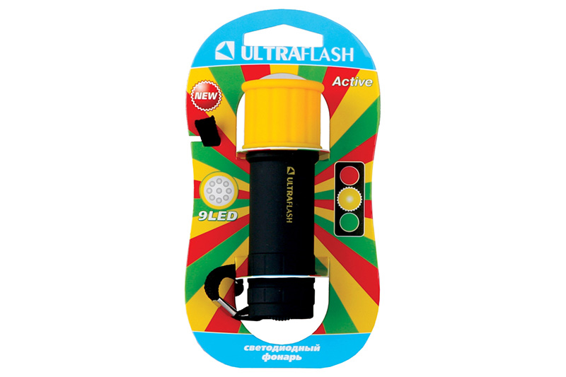 Фонарь Ultraflash LED15001-B (3xR03 светофор, желтый с черным, 9 LED, пластик, блистер) 6/96