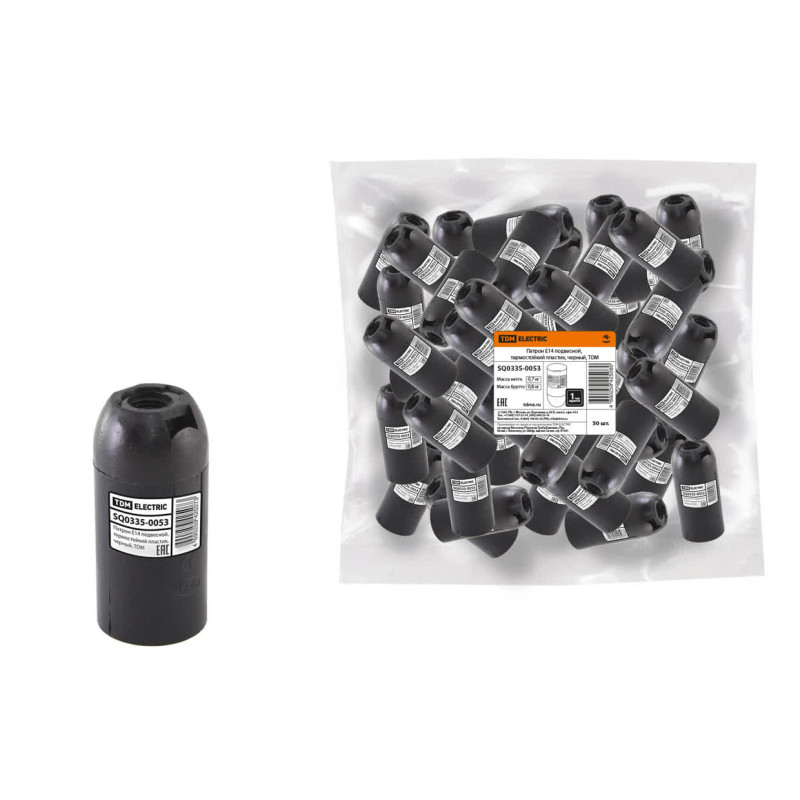 Патрон Е14 подвесной, термостойкий пластик, черный, TDM
