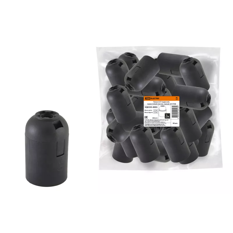 Патрон Е27 подвесной, термостойкий пластик, черный, Б/Н TDM /мин.пар.15шт