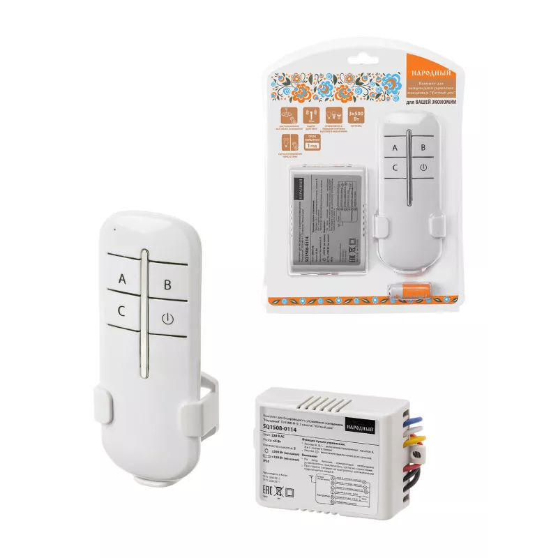 Комплект для беспроводного управления освещением "Народный" ПУ3-МK-Н-3 (3 канала) "Уютный дом"