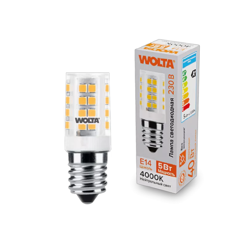 WOLTA светодиодная лампа для холодильник WSTD-JCD-5W4KE14-C 5Вт 460лм 4000K E14 (керамика) 2/100