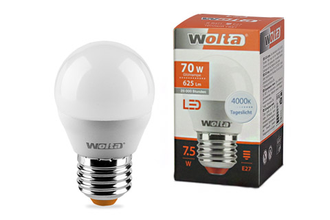 WOLTA Лампа светодиодная G45 7,5Вт 625 лм 4000К-Е27 /50