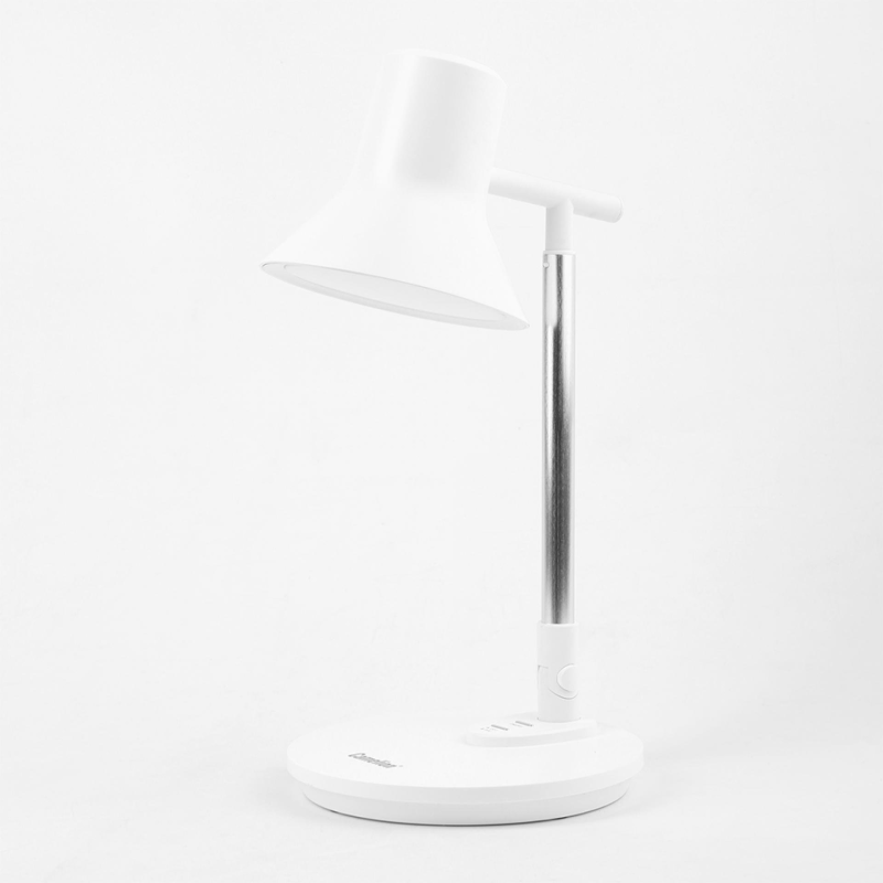 Светильник качества Премиум. Плафон поворачивается в вертикальной и горизонтальной плоскостях. Максимальная высота плафона над уровнем стола 420 мм. Превосходная компактная модель для использования в офисе , дома , на столе школьника и даже на прикроватной тумбе. Плафон- пластик, стойка – алюминий, основание – пластик. Два сенсорных выключателя на основании светильника: Вкл\/ Выкл и кнопка регулирования яркости ( долгое нажатие) и переключения цветовой температуры( короткое нажатие).Телескопическая металлическая стойка (изменение высоты стойки на 110 мм), Высокое качество цветопередачи - Ra>85