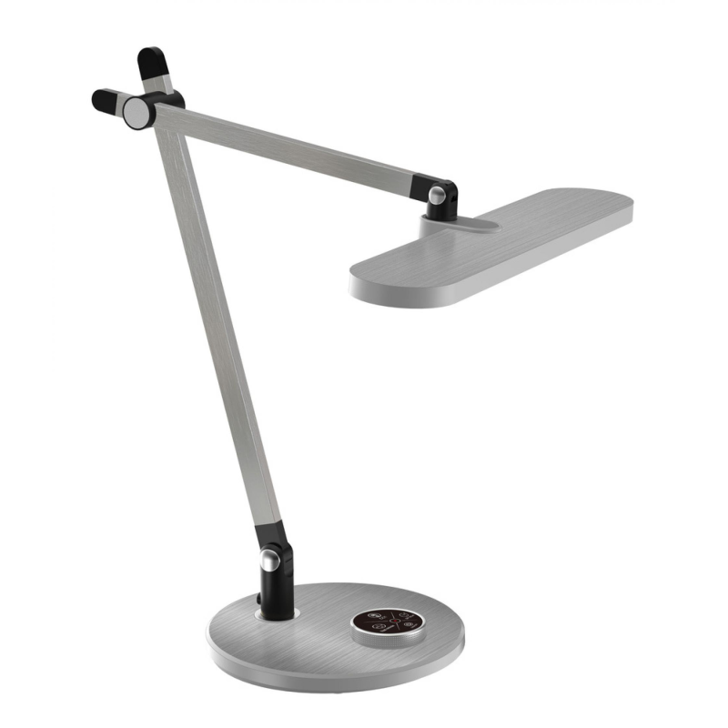 Светильник качества Премиум. Плафон поворачивается в вертикальной и горизонтальной плоскостях. Максимальная высота плафона над уровнем стола 650 мм. Превосходная модель для использования в офисе и дома для освещения рабочих мест, оснащенных компьютерами. Плафон- пластик, стойка – алюминий, основание – пластик+металл. Сенсорный дисковый выключатель на основании светильника. Имеет функцию механического вращения для регулирования яркостиЗадержка выключения – 90 секунд ;Высокое качество цветопередачи - Ra>90. Таймер на 5 сек и 30 минут.