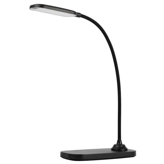 Настольный светильник со светодиодами (LED) в качестве источников света. Встроенный литиевый аккумулятор для автономной работы. Бесконтактное переключение - для управления нужно просто провести рукой под плафоном или подержать руку под плафоном для плавного диммирования. Выбор цветовой температуры - 3 цвета: 3000К, 4500К, 6000К. Плавный диммер для регулировки яркости. Подзарядка от USB. USB кабель в комплекте. Выключатель для отключения/блокировки бесконтактного управления на обратной стороне основания. Гибкая стойка.