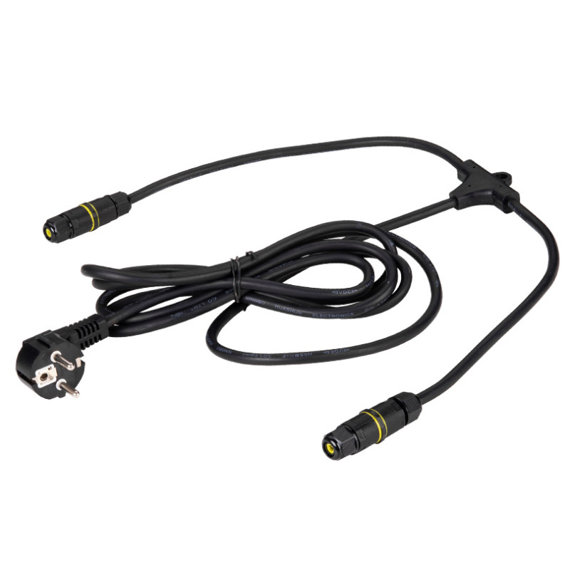 Комплект соединительный предназначен для быстрого, надежного и безопасного подключения к электрической сети прожекторов и других электрических потребителей мощностью до 250 Вт. Длина кабеля с ответвлениями состовляет 3,06 метра. Присутствует защита IP68. Можно установить до двух прожекторов.