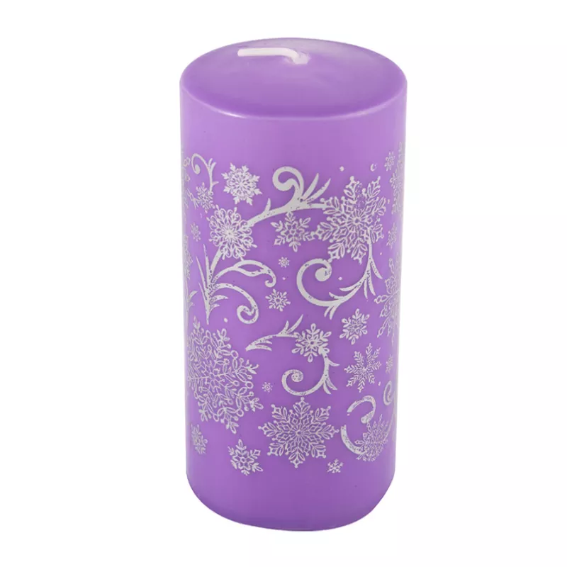 Свеча Deco Christmas "С Новым годом!" 120 мм Ø 56 мм (серебро на сиреневом) 1/12