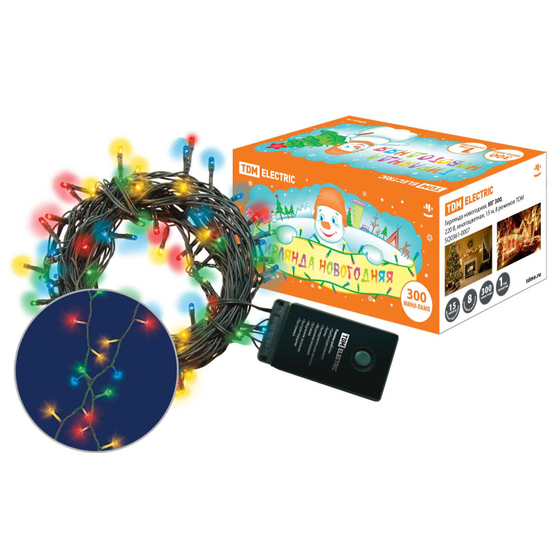 Гирлянда новогодняя, МГ 300, 220 В, многоцветная, 15 м, 8 режимов TDM 10/30 ЦЕНА ▼