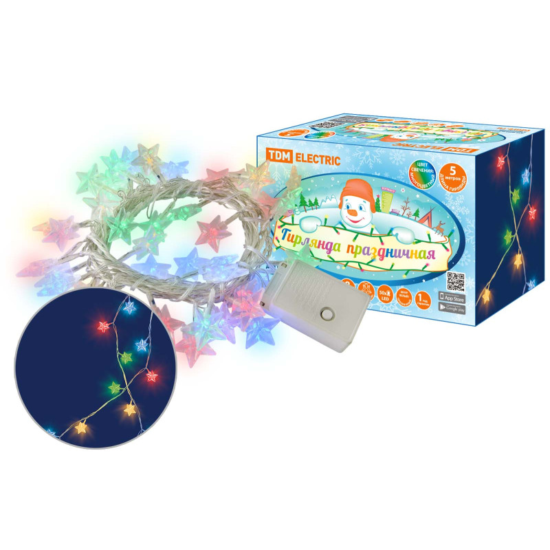 Гирлянда светод."Звездочки" 50LED, 5м, 8 режимов, многоцвет., прозр.шнур, 250 В, TDM 1/36 ЦЕНА▼