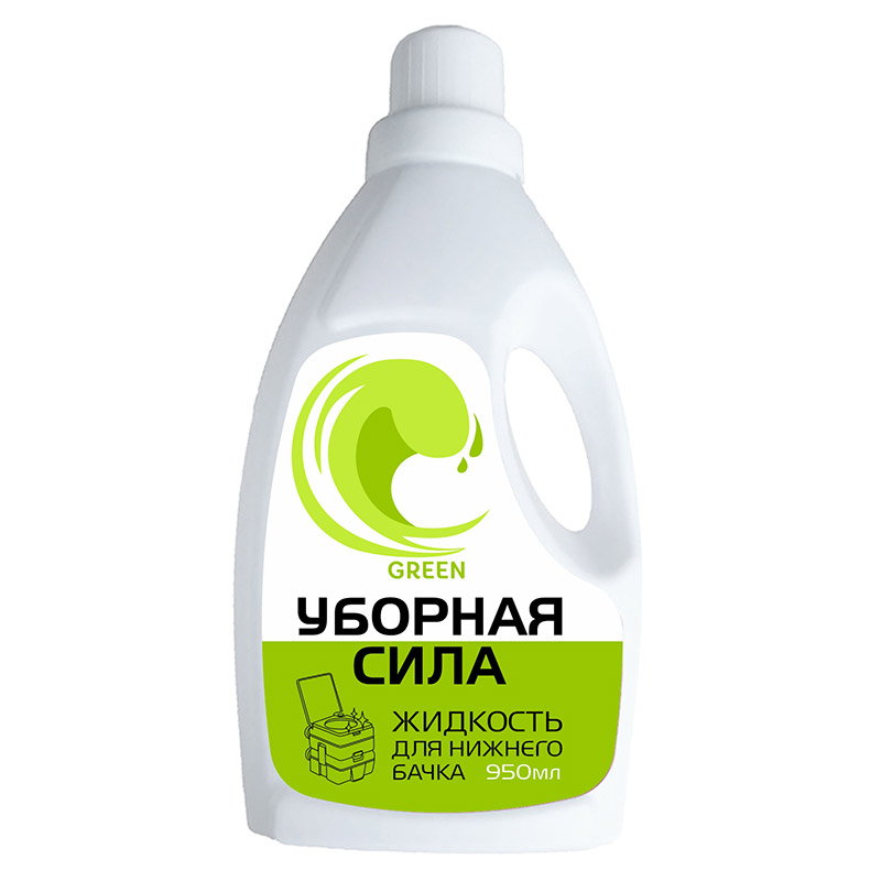 Зеленая жидкость для нижнего бачка (отходы выливаются в компост) Жидкости Уборная сила – концентрат, используется в биотуалетах, ведрах-туалетах, выгребных ямах, септиках, туалетах «с выдвижной бадьей», системах коттеджной канализации для устранения запаха и переработки отходов жизнедеятельности