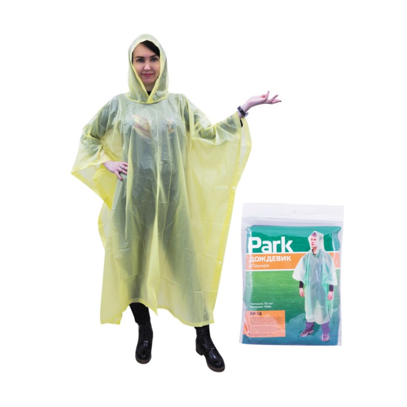 Дождевик- плащ RC-70, размер L (130x140см), ПЕВА, желтый Park