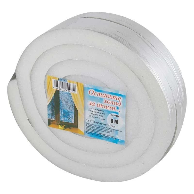 Уплотнитель самоклеящийся для окон «Поролон» 20х20мм 6м 4/120