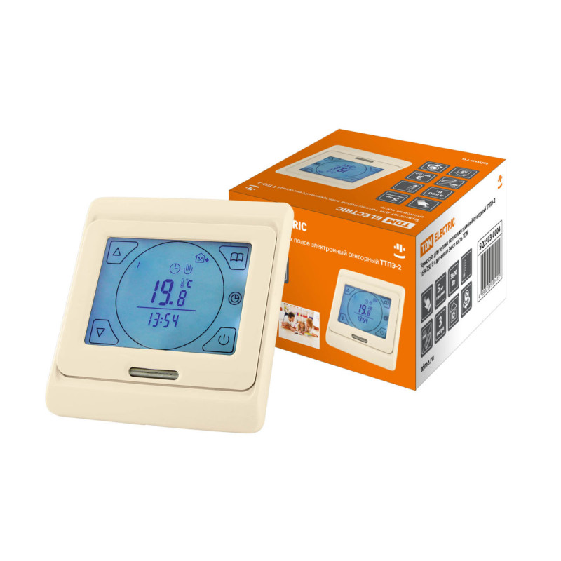 Термостат для теплых полов электронный сенсорный ТТПЭ-2 16А 250В с датчиком 3м сл костьTDM